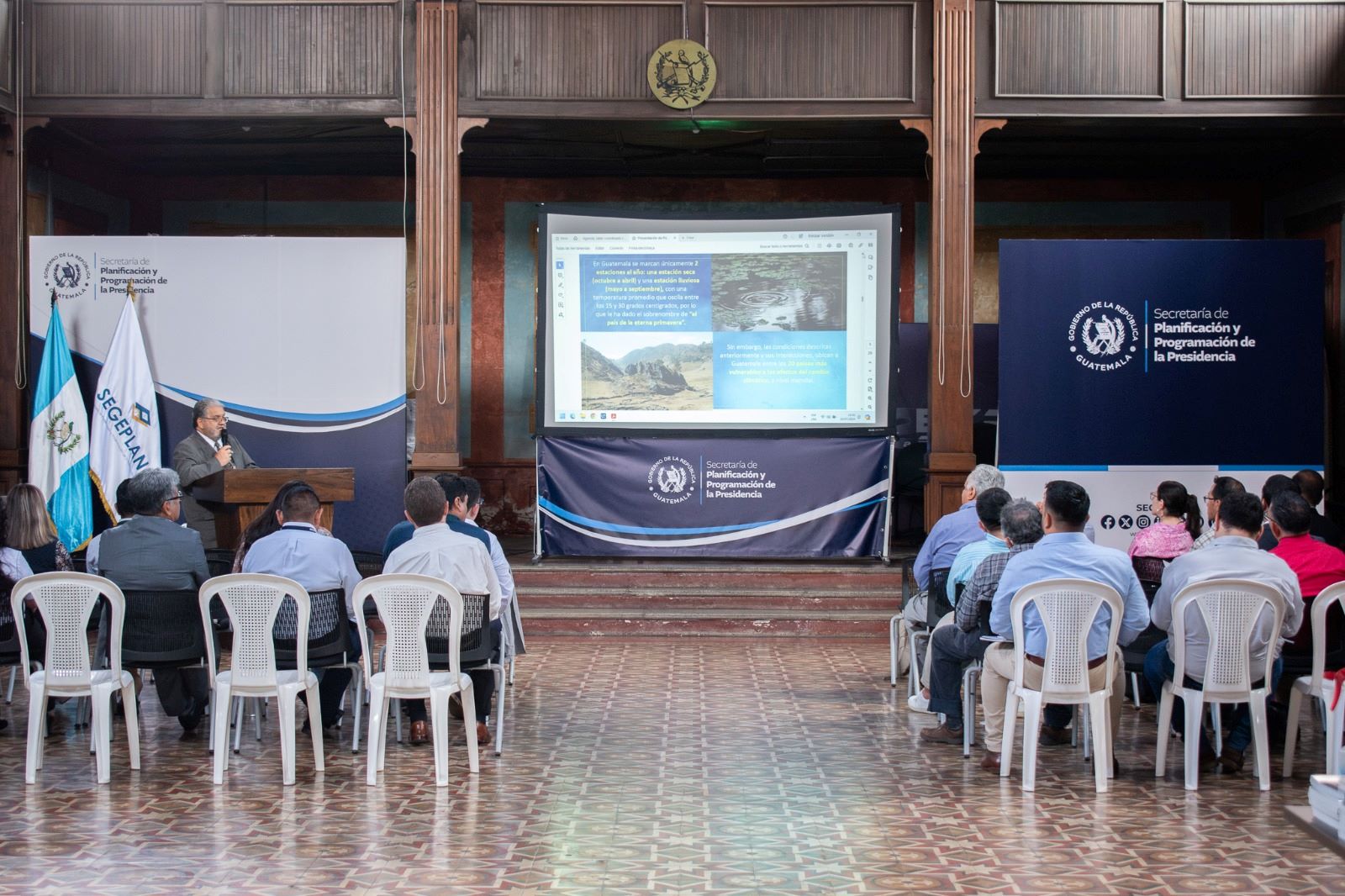 Guatemala, 26 de julio de 2024. La Secretaría de Planificación y Programación de la Presidencia (SEGEPLAN) en coordinación con el Ministerio de Ambiente y Recursos Naturales (MARN) capacitaron durante dos días a funcionarios y especialistas de las principales instituciones que tienen responsabilidad directa sobre las herramientas del Enfoque de Gestión de Riesgo y Adaptación al Cambio Climático.