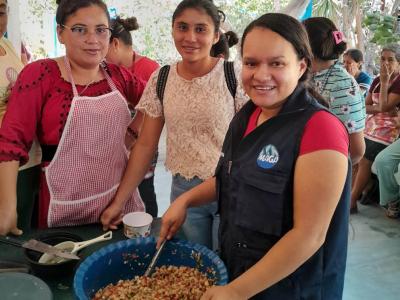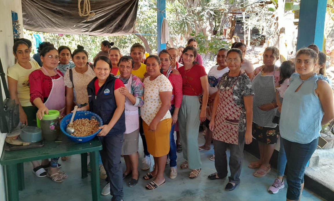 En la comunidad El Cuje, las beneficiarias participaron en la elaboración de ceviche de soya, una alternativa nutritiva y de bajo costo que refuerza la seguridad alimentaria.