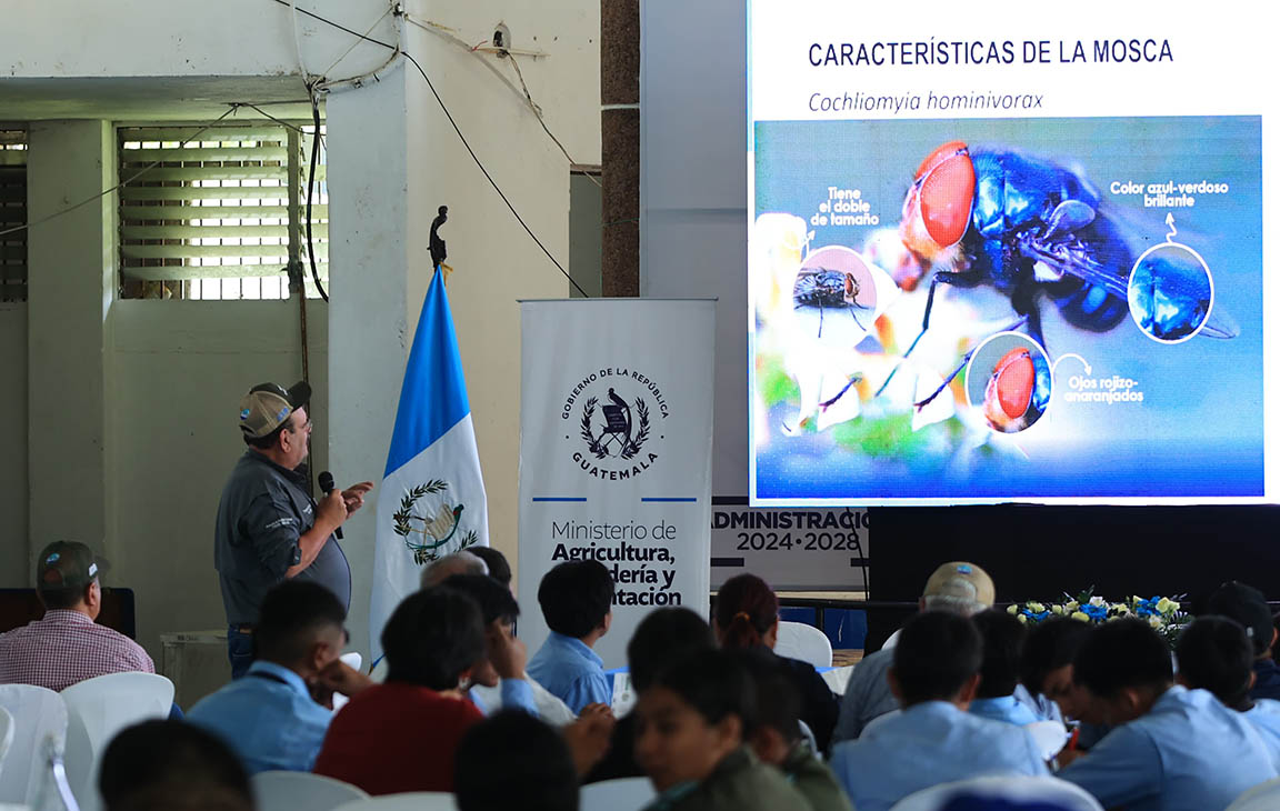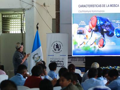 El Ministerio de Agricultura, Ganadería y Alimentación (MAGA) desarrolló en el municipio de Cobán, Alta Verapaz, una capacitación relativa al Gusano Barrenador del Ganado (GBG) que fue dirigida a ganaderos y estudiantes. Esta actividad se realizó como parte de la gira de trabajo en dicho departamento de la viceministra de Sanidad Agropecuaria y Regulaciones (VISAR), Mayra Motta.