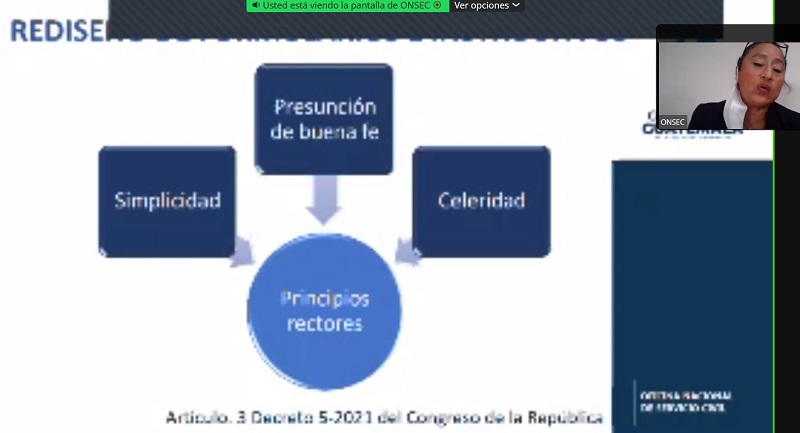 Durante la exposición, la licenciada Contreras dijo que para los rediseños para implementar esta normativa se tomó como referencia la Guía Metodológica para la Simplificación de Requisitos y Trámites Administrativos proporcionada por la Comisión Presidencial de Gobierno Abierto y Electrónico (GAE).