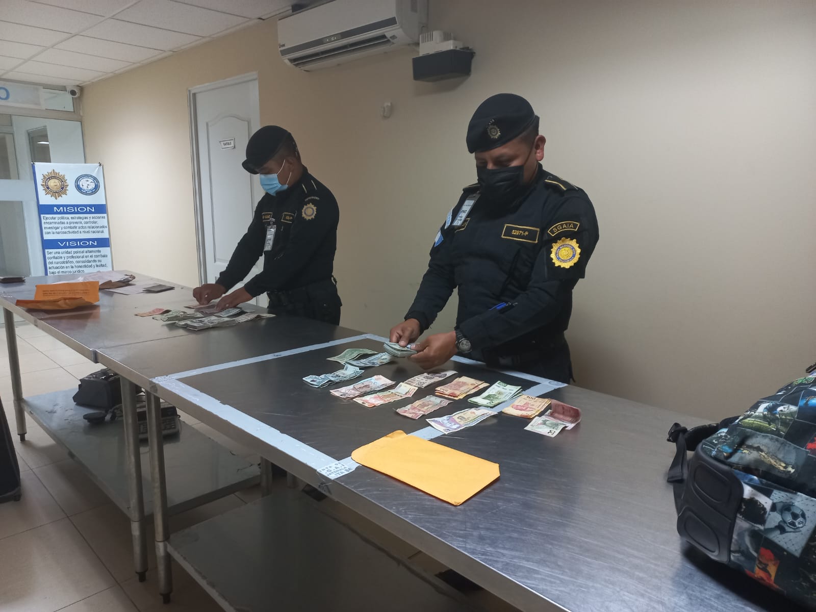 La entidad policial informó que en la mochila se decomisó US $10 304, 5070 pesos mexicanos y Q425, tras verificar en la Declaración Jurada Regional de Viajero de la IVE-SIB, se estableció que el dinero no fue declarado.