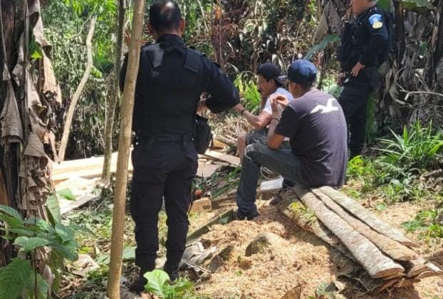 Según Edgar de la Cruz Jefe de la División, agentes de Diprona de la delegación de San Marcos, capturaron de forma infraganti a Kevin Gamaliel Cash Gómez, de 33 años y a Víctor David López Ovalle, de 22, en un área boscosa de la finca San Luis, El Tumbador, San Marcos, cuando talaba sin la respectiva licencia, árboles de palo blanco, tempisque y guayabo.