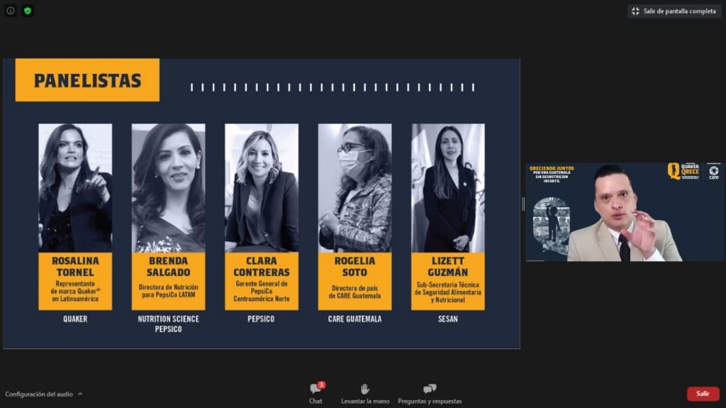 Para discutir sobre la situación actual de la malnutrición en el país, resaltando las alianzas multisectoriales para responder a su mejora, Lizett Guzmán, subsecretaria técnica de la Secretaría de Seguridad Alimentaria y Nutricional (Sesan), participó en el conversatorio virtual “Qreciendo Juntos: Por una Guatemala sin desnutrición infantil” y lanzamiento del proyecto de “Quaker Crece” que es además una intervención coordinada entre Quaker y la organización no gubernamental, CARE.