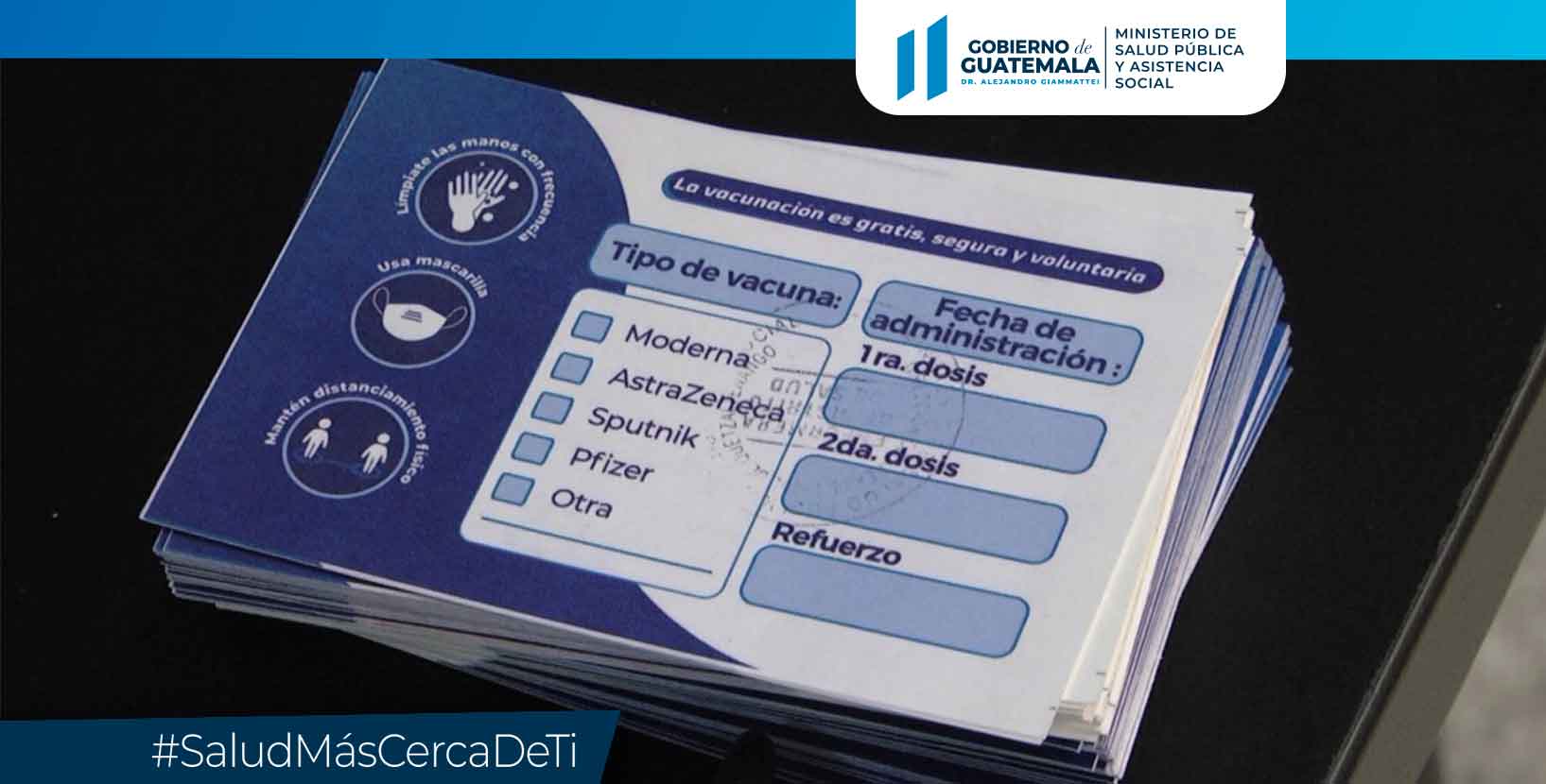 Para esto, el MSPAS ha diseñado un carné de vacunación, que consta de una tarjeta impresa en papel cartón, debidamente identificada y firmada por el personal del centro de atención. Este recurso, tiene la única finalidad de recordar al individuo el tipo de vacuna que le fue colocada, la dosis que le fue administrada y la fecha en que acudió al puesto de vacunación. Es importante mencionar que este documento, no tienen ninguna finalidad legal, por lo que no es funcional para la realización de trámites y es totalmente gratuito.