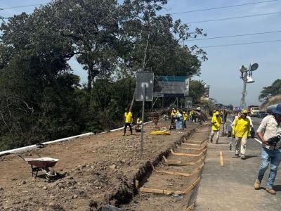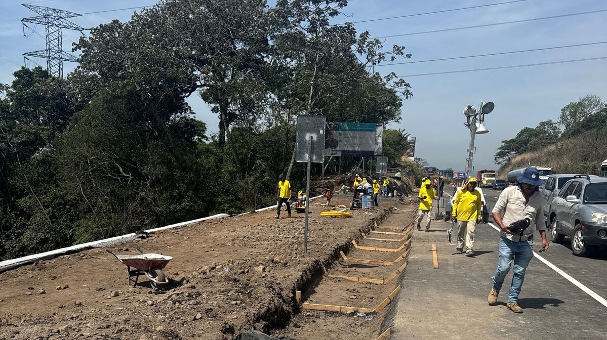 La recuperación de la autopista Palín – Escuintla ha concluido con la pavimentación de los cinco carriles, construcción del bordillo central y limpieza del tramo. Además, se realizaron obras complementarias como la fundición de cunetas para drenaje, siembra de plantas en el arriate central y protecciones de corona MSE, garantizando una infraestructura duradera y resistente.