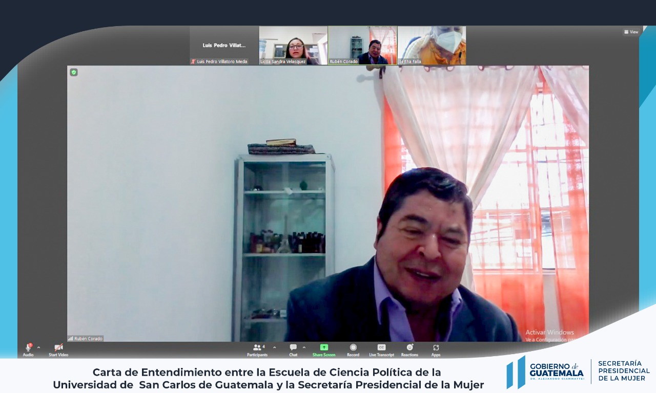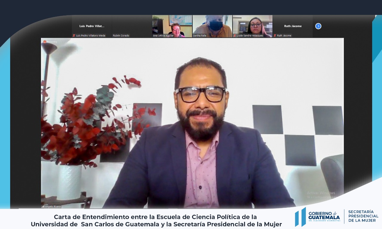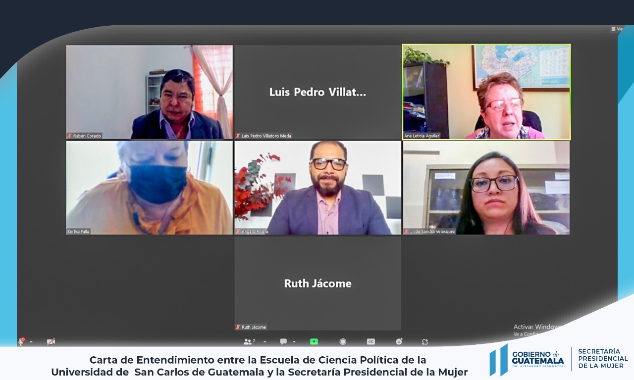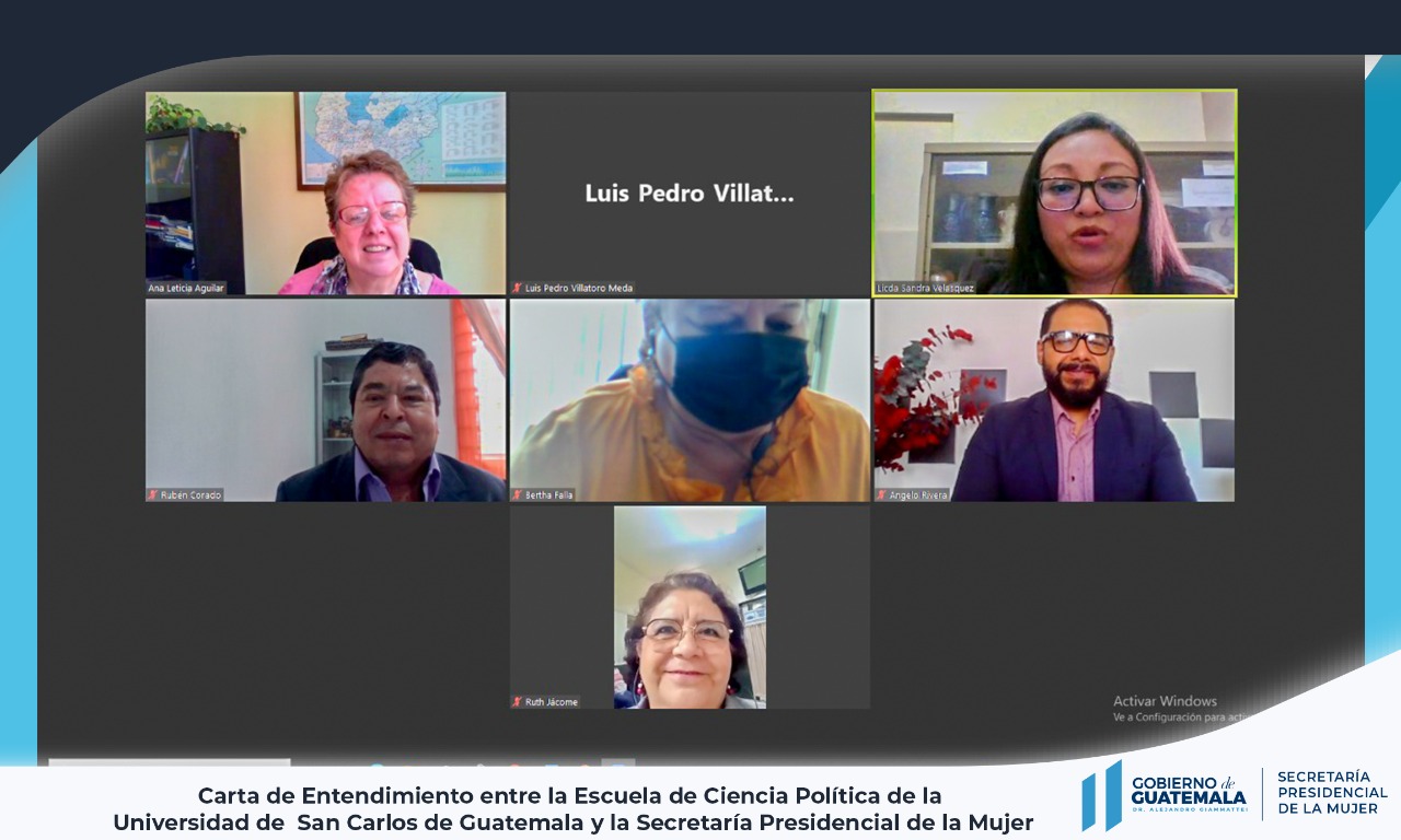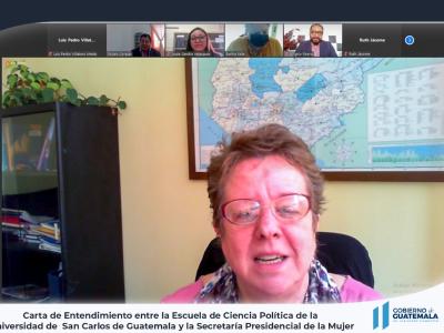 La Secretaría Presidencial de la Mujer y la Escuela de Ciencia Política de la Universidad de San Carlos de Guatemala, llevaron a cabo la suscripción de la Carta de Entendimiento y Cooperación, con el objeto de establecer las bases, para llevar a cabo actividades que impulsen acciones que promuevan articulaciones y debates académicos que permitan identificar rutas de acción a seguir en los diferentes campos de las ciencias sociales, como las Relaciones Internacionales, Sociología y Ciencia Política, para la incorporación del enfoque de equidad entre hombres y mujeres y derechos humanos de las mujeres en docencia, investigación y extensión universitaria de la Escuela.