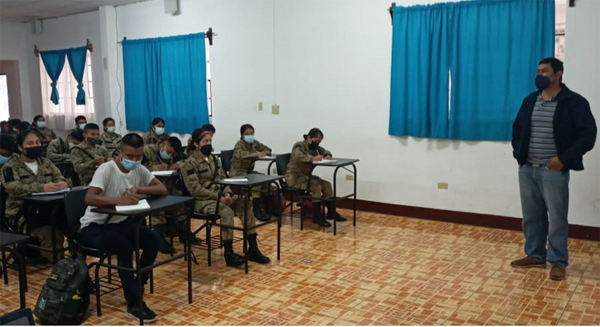 En Quetzaltenango, la delegación capacitó al personal de las Reservas Militares del Ejército sobre la importancia de cuidar el agua. En total fueron capacitados 80 jóvenes que podrán replicar los conocimientos en las comunidades donde viven y que visitan.
