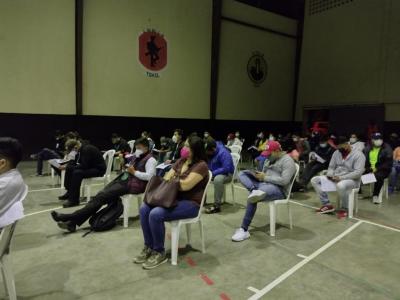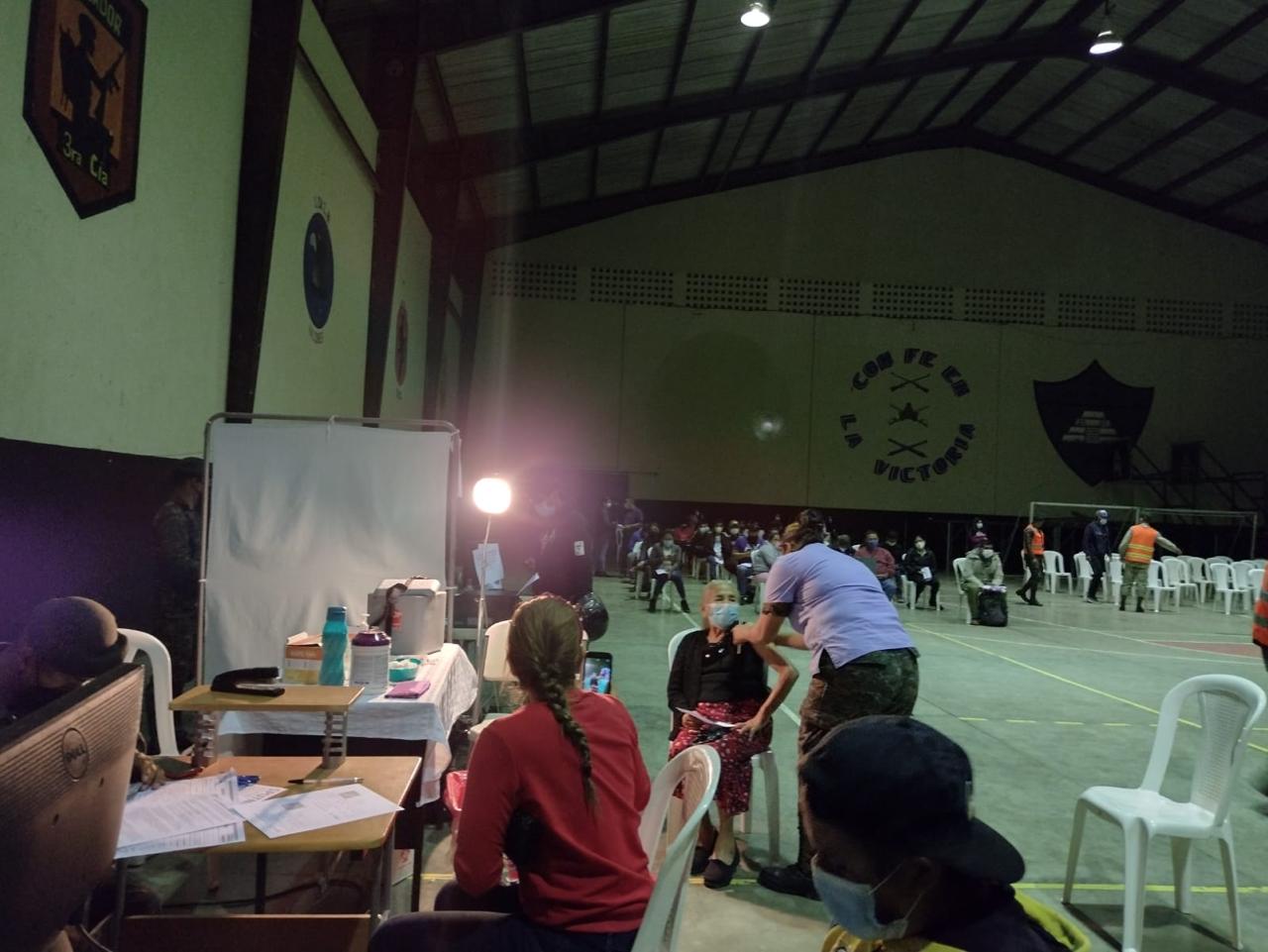 Con el objetivo de agilizar el proceso de vacunación contra la COVID-19, el personal de salud del departamento de Huehuetenango realiza inmunización a decenas de personas de 40 años o más edad y estudiantes universitarios, previamente registrados en la 5ta. Brigada Militar de Huehuetenango, al Puesto de Vacunación Nocturno COVID-19.