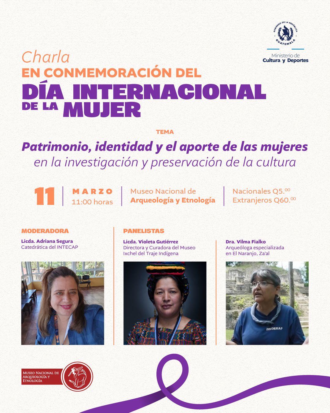 Te invitamos a participar en este espacio de diálogo que reúne a destacadas profesionales del ámbito cultural y académico para reflexionar sobre el patrimonio, la identidad y el aporte de las mujeres en la investigación y preservación de la cultura.