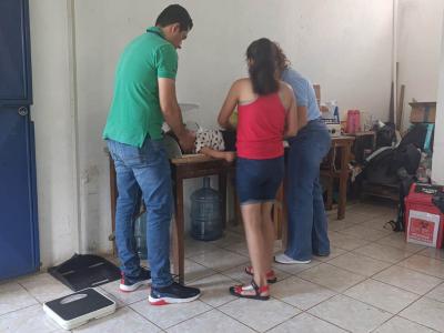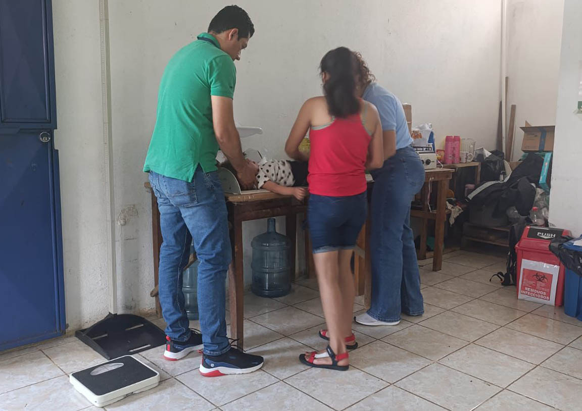 Posteriormente, el equipo participó en la jornada de control de peso y talla en el Puesto de Salud de la aldea, con el objetivo de monitorear a niños con desnutrición aguda y bajo peso, así como para la entrega de suplementación y alimentos complementarios.