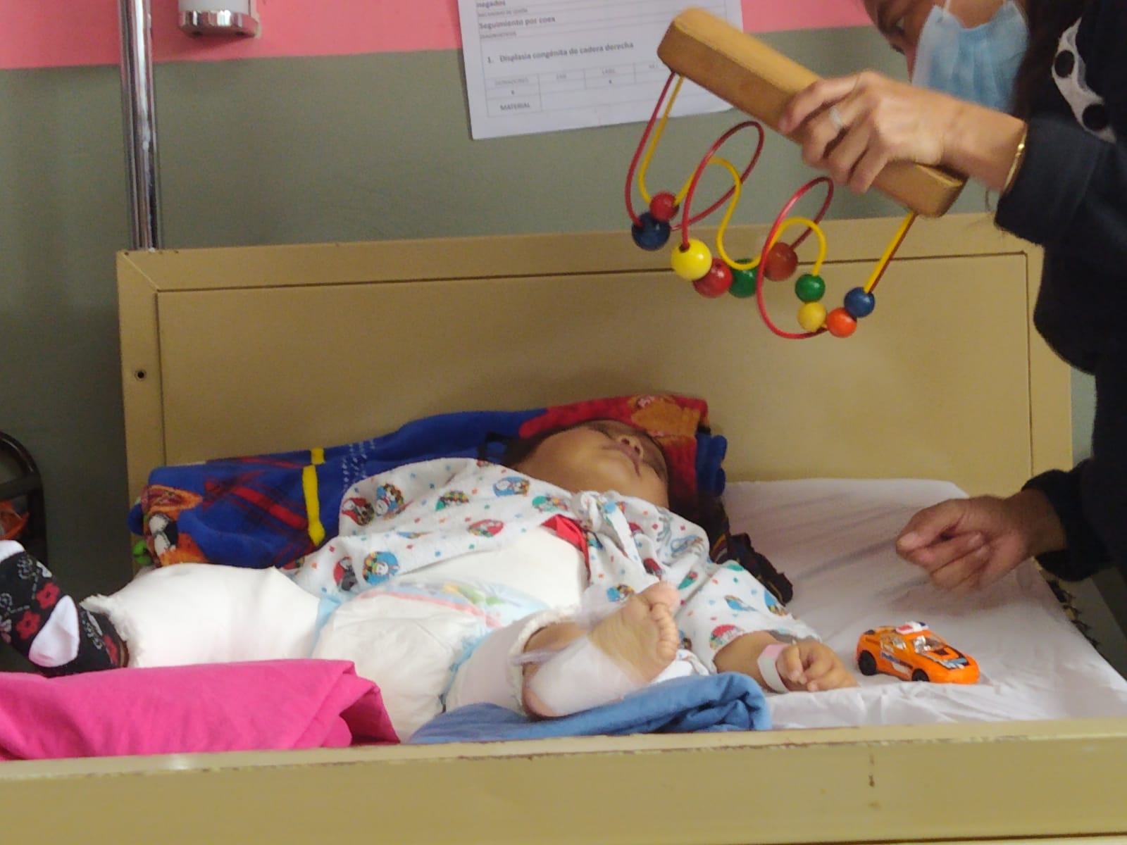 Y es que Chelse fue intervenida quirúrgicamente en el Hospital General San Juan de Dios, para corregir la displasia del desarrollo de cadera, después de esto le fue colocado yeso, el cual deberá tenerlo aproximadamente por 3 meses, con lo cual le dieron egreso, ahora lo que queda es que llegue a sus citas en la Consulta Externa de la Pediatría de este servicio.