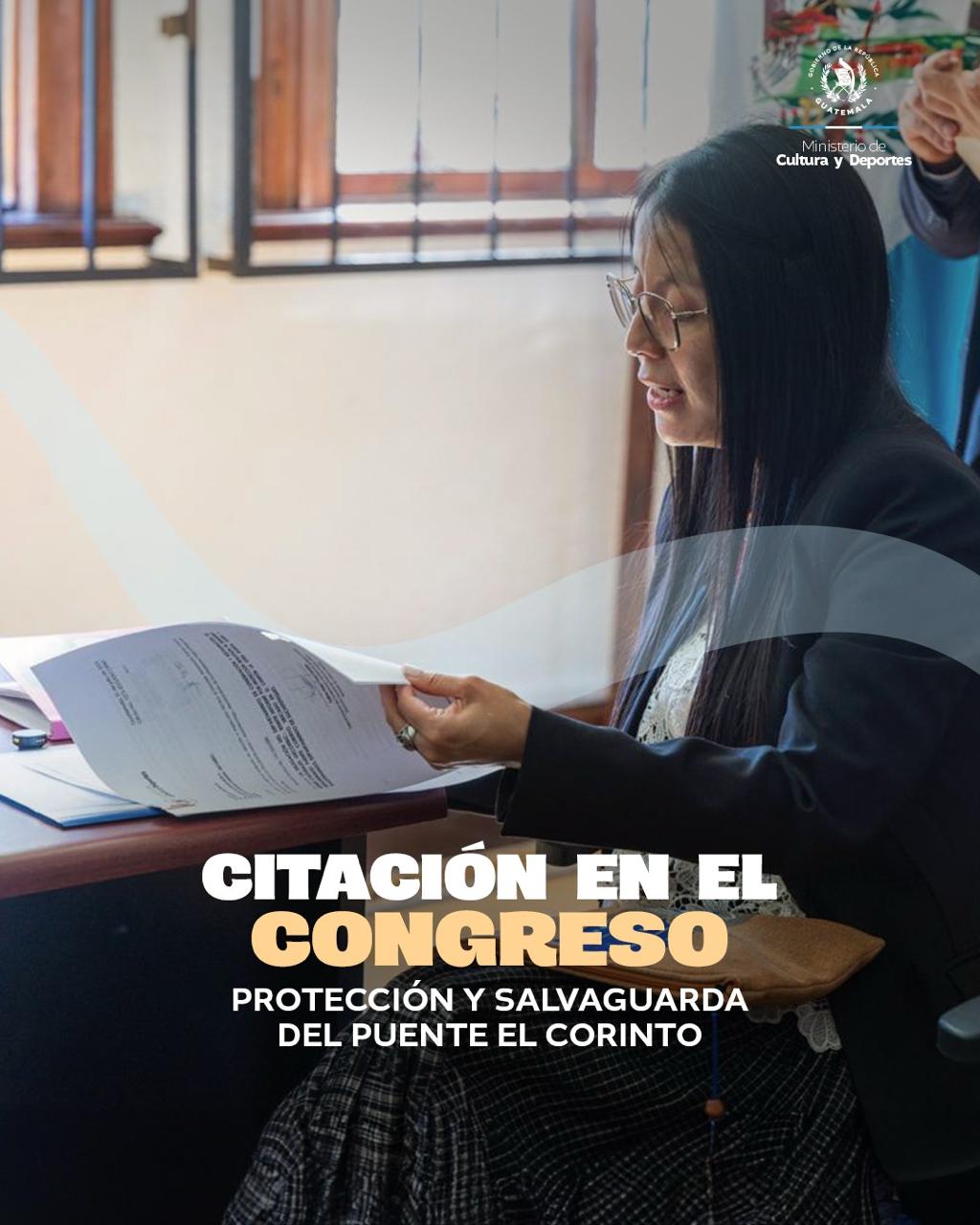 La viceministra de Patrimonio Cultural y Natural, Laura Cotí Lux, participó en una reunión en el Congreso de la República junto a la directora General Ana Claudia Monzón y equipo técnico de esta cartera, para abordar acciones de protección y salvaguarda del Puente El Corinto.