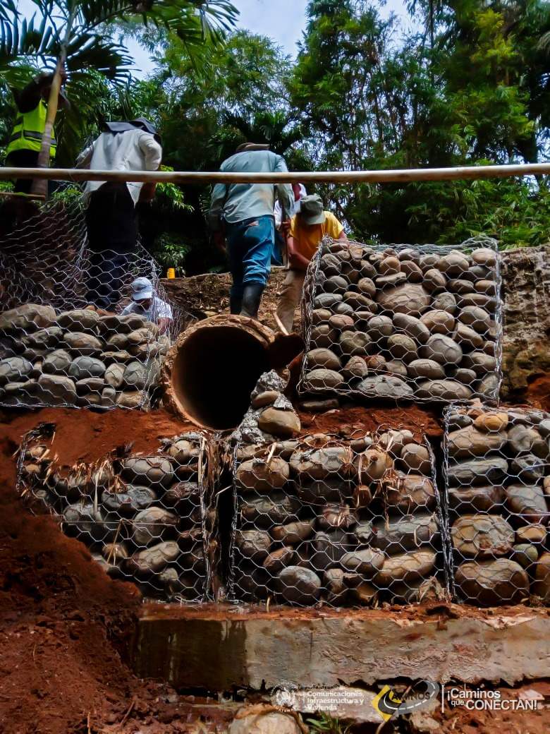 Los trabajos, liderados por la Dirección General de Caminos, a través de la Zona Vial No. 9, incluyen la construcción de un muro de gaviones y relleno controlado, que permitirán estabilizar el área afectada y restablecer la infraestructura dañada.