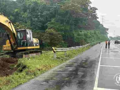 Actualmente personal de la Dirección General de Caminos, trabaja en la limpieza del lugar, también es importante resaltar que ya hay equipo técnico, operarios, y maquinaria en el sitio realizando los trabajos con base en la disponibilidad del área.