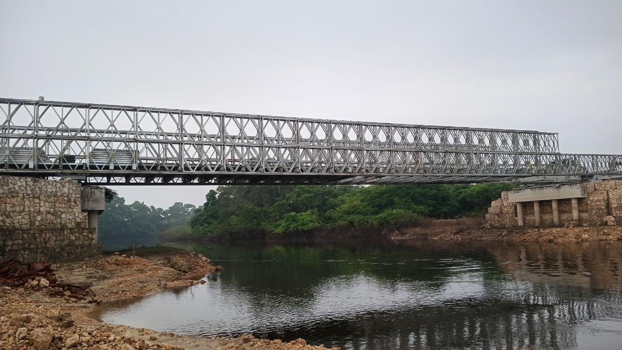 Tras intensas jornadas de trabajo, incluso en horario nocturno, la Dirección General de Caminos concluyó la colocación de un puente modular que permitirá la conectividad sobre el arroyo Petexbatún en Petén.