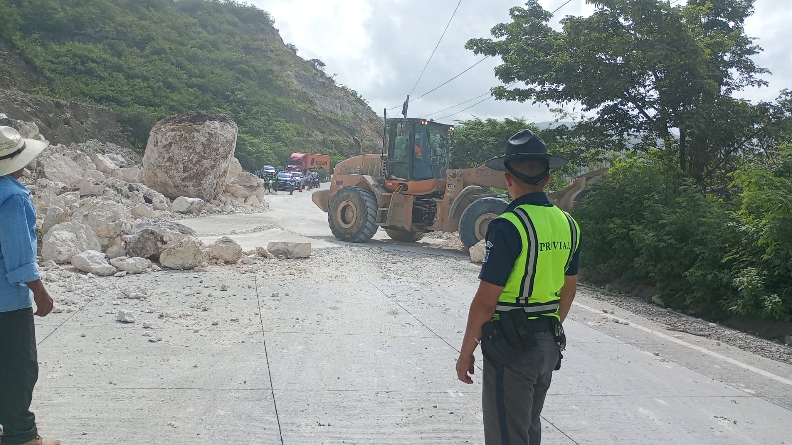 Actualmente, se ha logrado restablecer el tránsito en el carril con dirección Sur, mientras que el paso hacia el Norte continúa cerrado por la presencia de rocas y material de gran tamaño.
