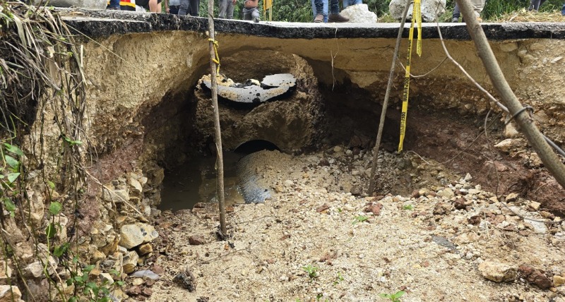 Las acciones realizadas fueron: excavación de la carretera a lo ancho para cambio de tubería transversal, colocación de una nueva de mayor diámetro, relleno compactado y próximamente colocación de carpeta asfáltica, para dejar transitable para los usuarios del lugar.