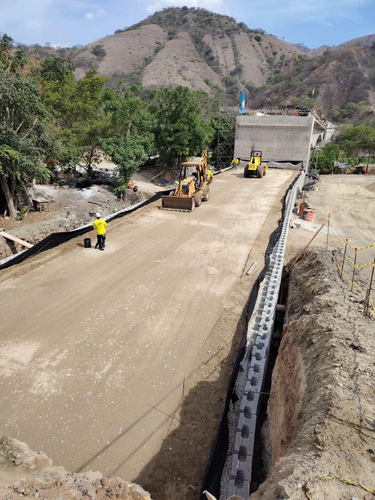El Ministerio de Comunicaciones, Infraestructura y Vivienda, a través de la Dirección General de Caminos, trabaja a toda marca en la construcción de los accesos al puente.