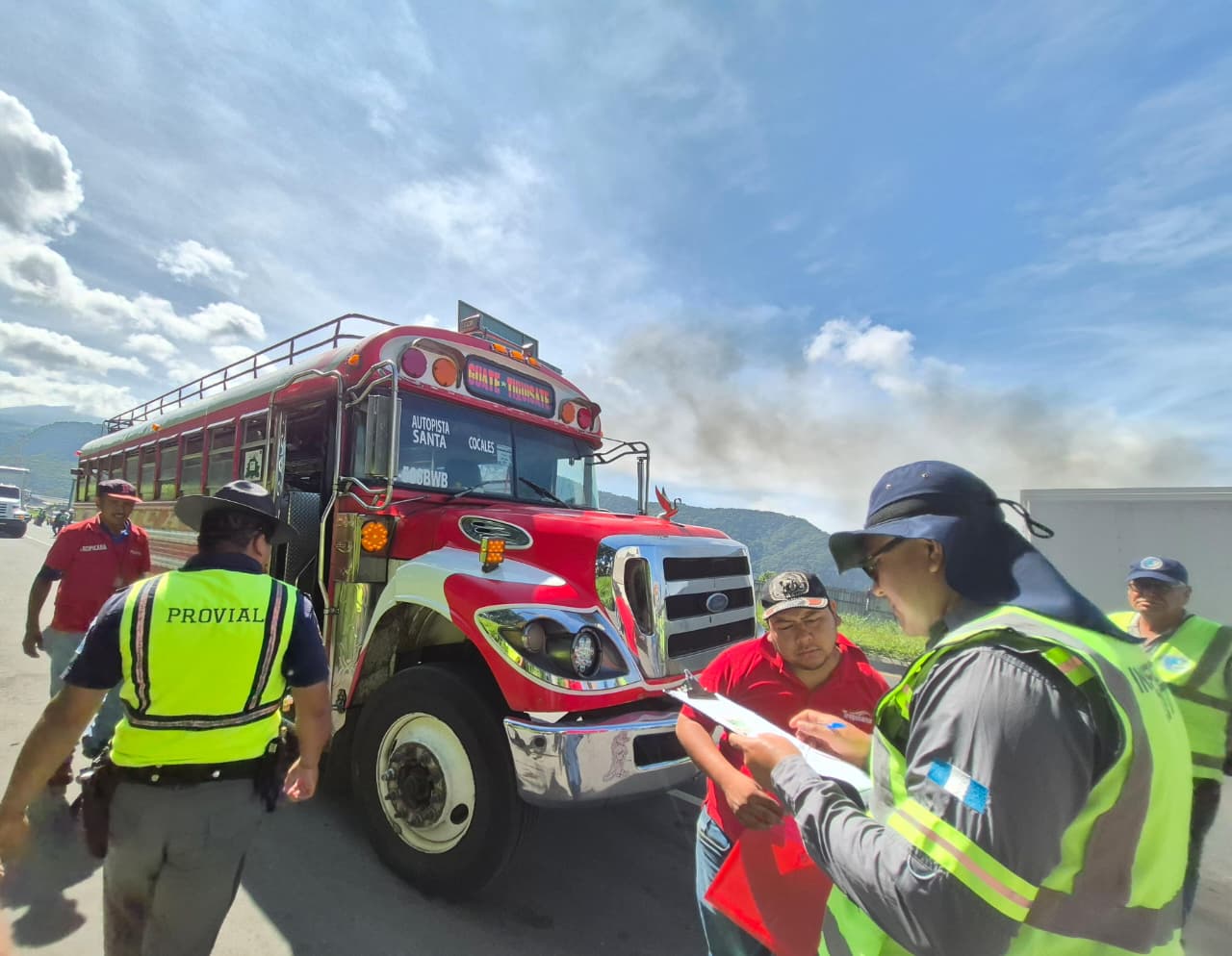 En conjunto con Provial y la Policía Municipal de Tránsito de Amatitlán, se verificó la documentación y condiciones de buses y transporte pesado, reforzando recomendaciones de prevención a los pilotos.