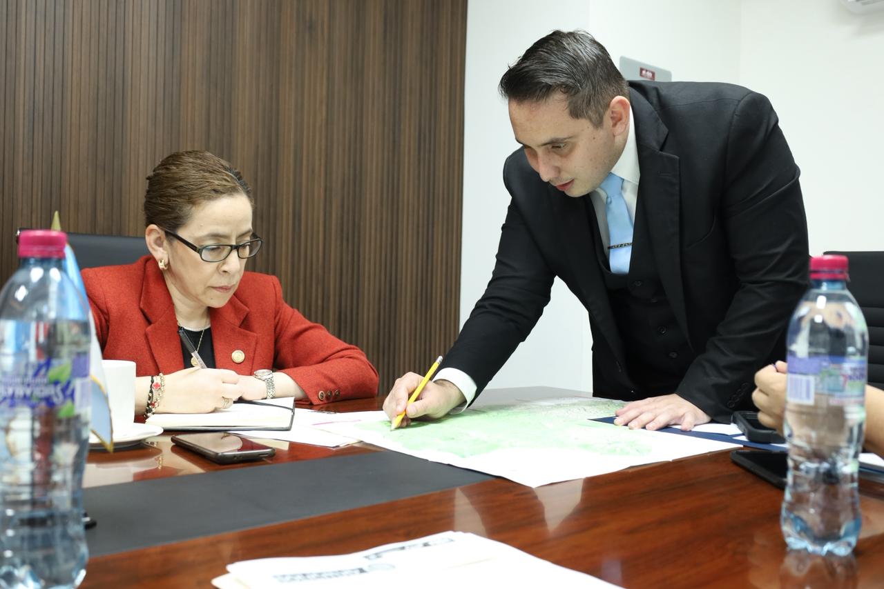 La viceministra de Infraestructura, Norma Zea, sostuvo una reunión de trabajo con el diputado Faver Salazar, de la Bancada Valor, para abordar temas relacionados con el avance de proyectos viales en el departamento de Jalapa.