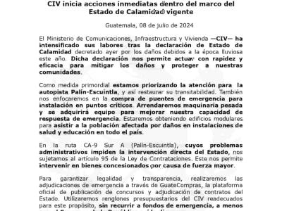 CIV inicia acciones inmediatas dentro del marco del Estado de Calamidad vigente
