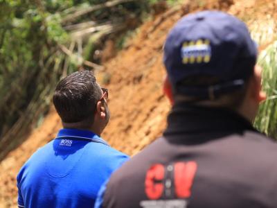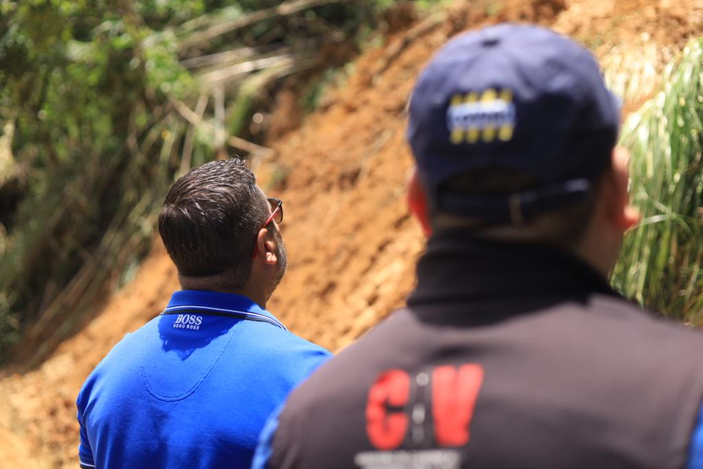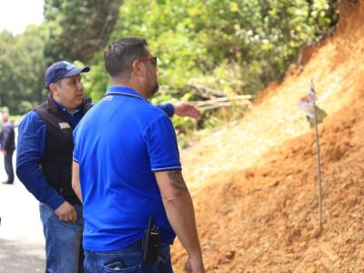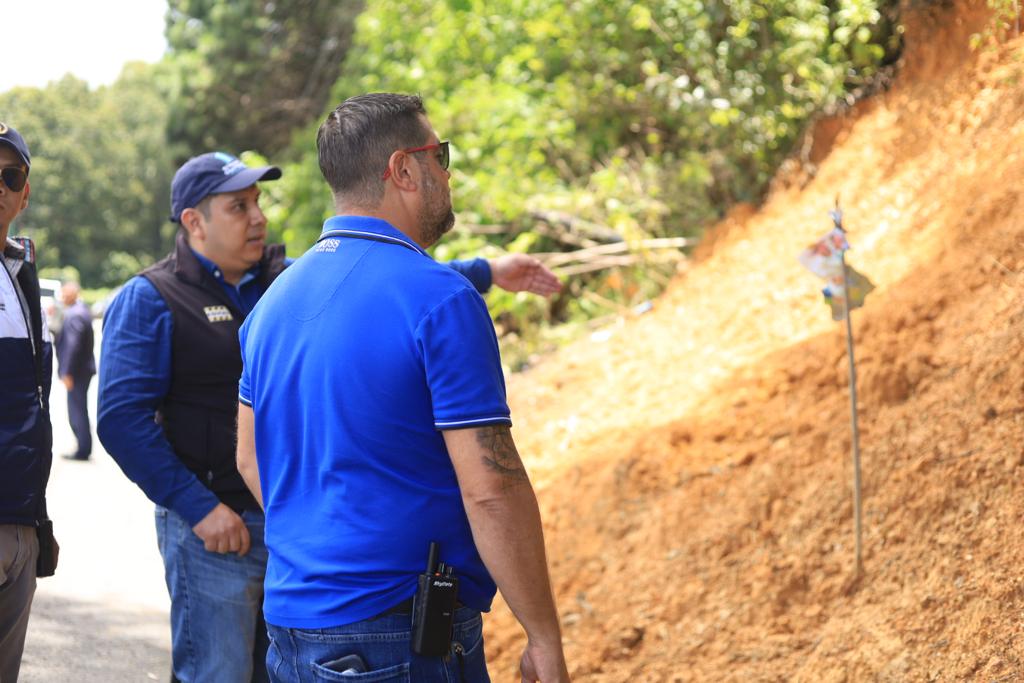 En atención inmediata del derrumbe que se originó en el km 12 de la ruta CA-01 Oriente, el ministro de Comunicaciones, Infraestructura y Vivienda -CIV-, Javier Maldonado y personal de la Unidad Ejecutora de Conservación Vial -COVIAL-, realizaron una visita en el lugar, para coordinar las acciones de mitigación del talud y la seguridad de los usuarios de la ruta.