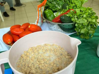 Entre los preparados destaca el ceviche de Protemás, que incluye ingredientes locales como tomate, pepino, cebolla, limón y cilantro. Además, se entregaron recetarios con opciones nutritivas y accesibles como tortitas de Protemás, tortillas de Incaparina y de espinaca.