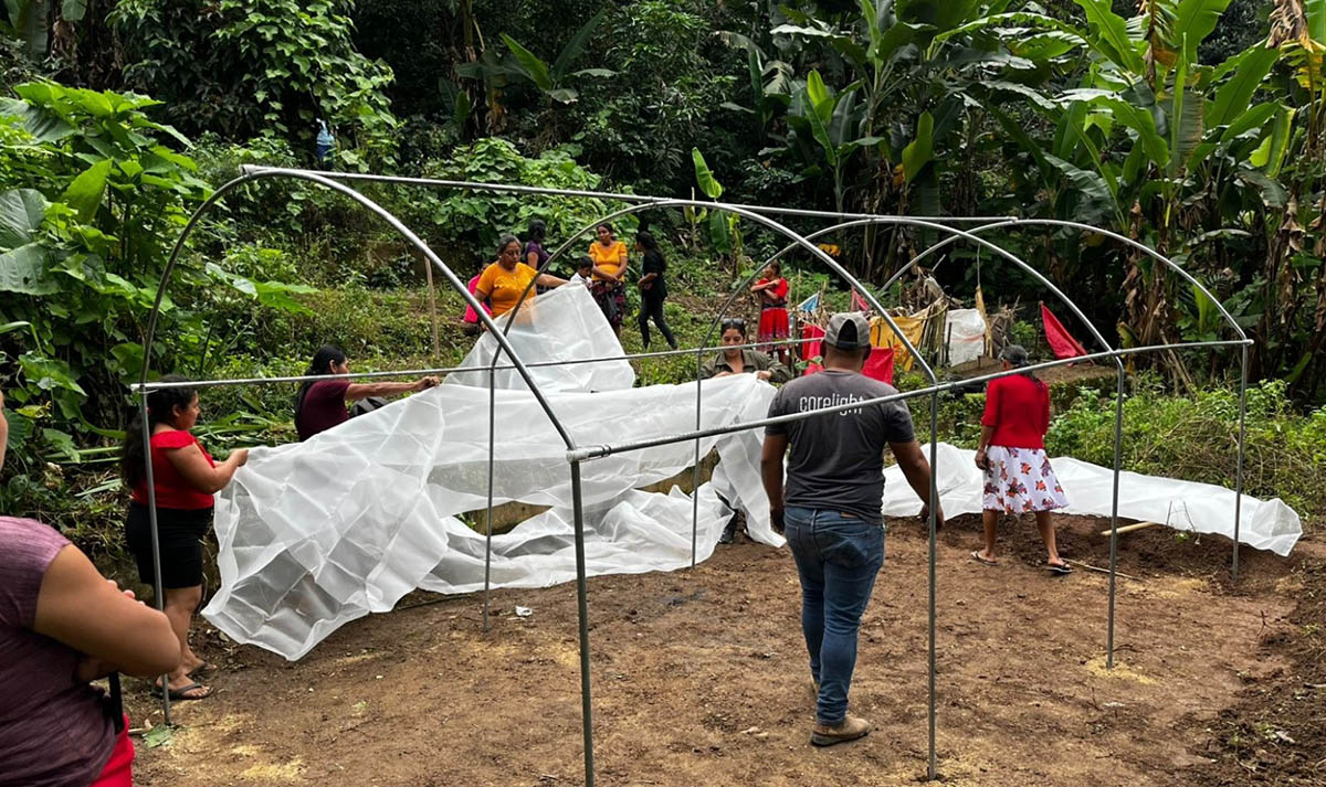 Se impulsaron huertos escolares, comunales y familiares, contribuyendo a mejorar la alimentación, especialmente en niñas y niños. También se fortalecieron los ingresos y la capacidad productiva de pequeños agricultores con el proyecto KOPIA-MAGA, instalando 30 macro túneles para la producción tecnificada de pilones.