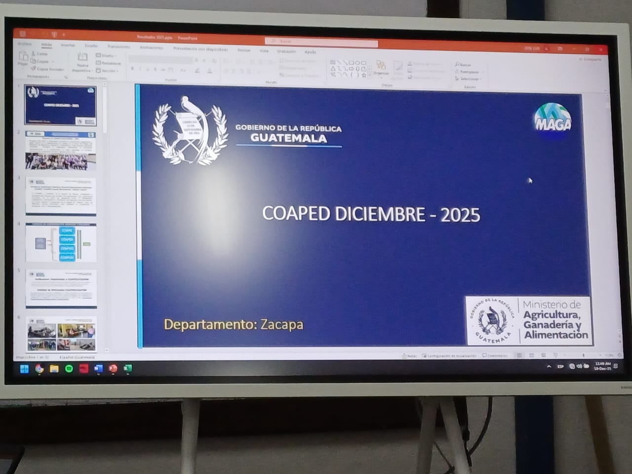 Durante la última reunión del Consejo de Coordinación Agrícola y Pecuario Departamental (COAPED) de Zacapa, se presentaron los resultados del año 2025 y se acordaron acciones para fortalecer la producción agrícola en el departamento.