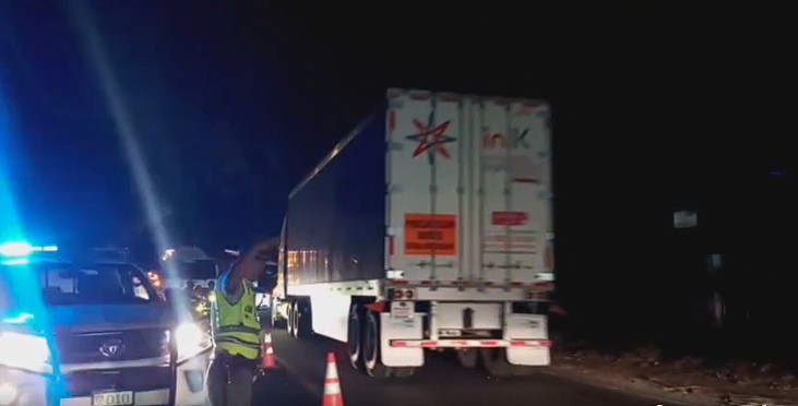 Brigadas de la Dirección General de Protección y Seguridad Vial (Provial) apoyan en la regulación vehicular luego de una colisión en el que un camión estuvo involucrado, por lo que quedó obstaculizado el tránsito sobre uno de los carriles, en el km. 143 de ruta CA-2 Occidente, en jurisdicción de San Antonio, Suchitepéquez. En el lugar se reportan daños materiales.