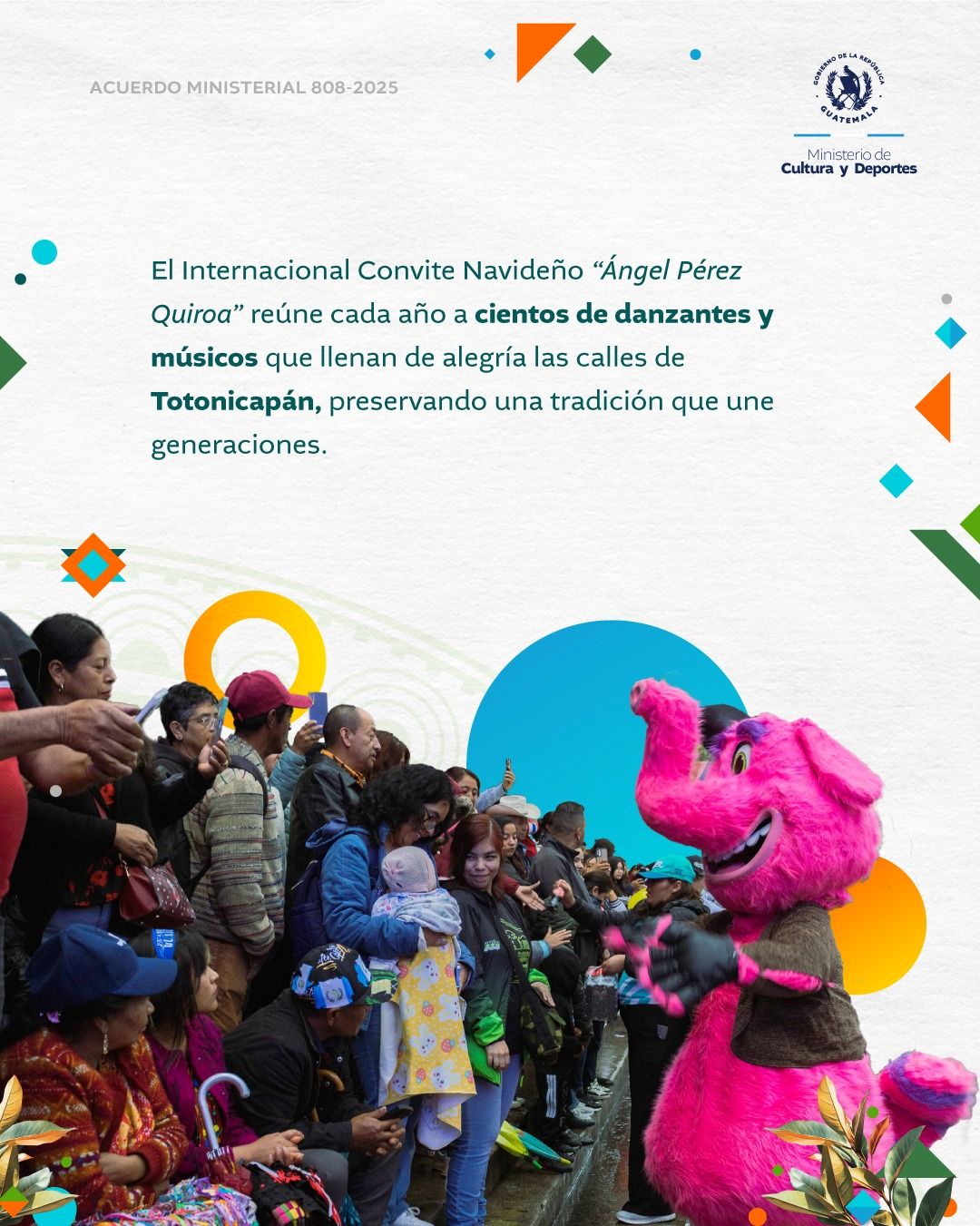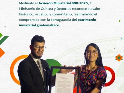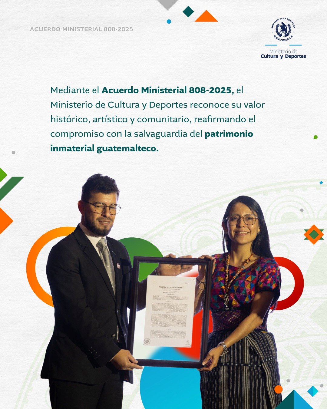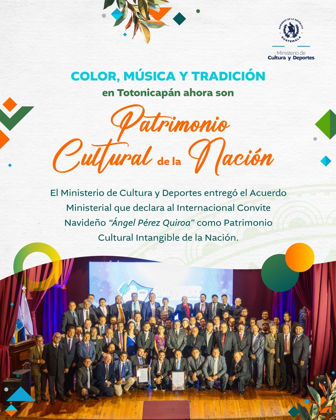 El Ministerio de Cultura y Deportes entregó el Acuerdo Ministerial que declara al Internacional Convite Navideño “Ángel Pérez Quiroa” como Patrimonio Cultural Intangible de la Nación.