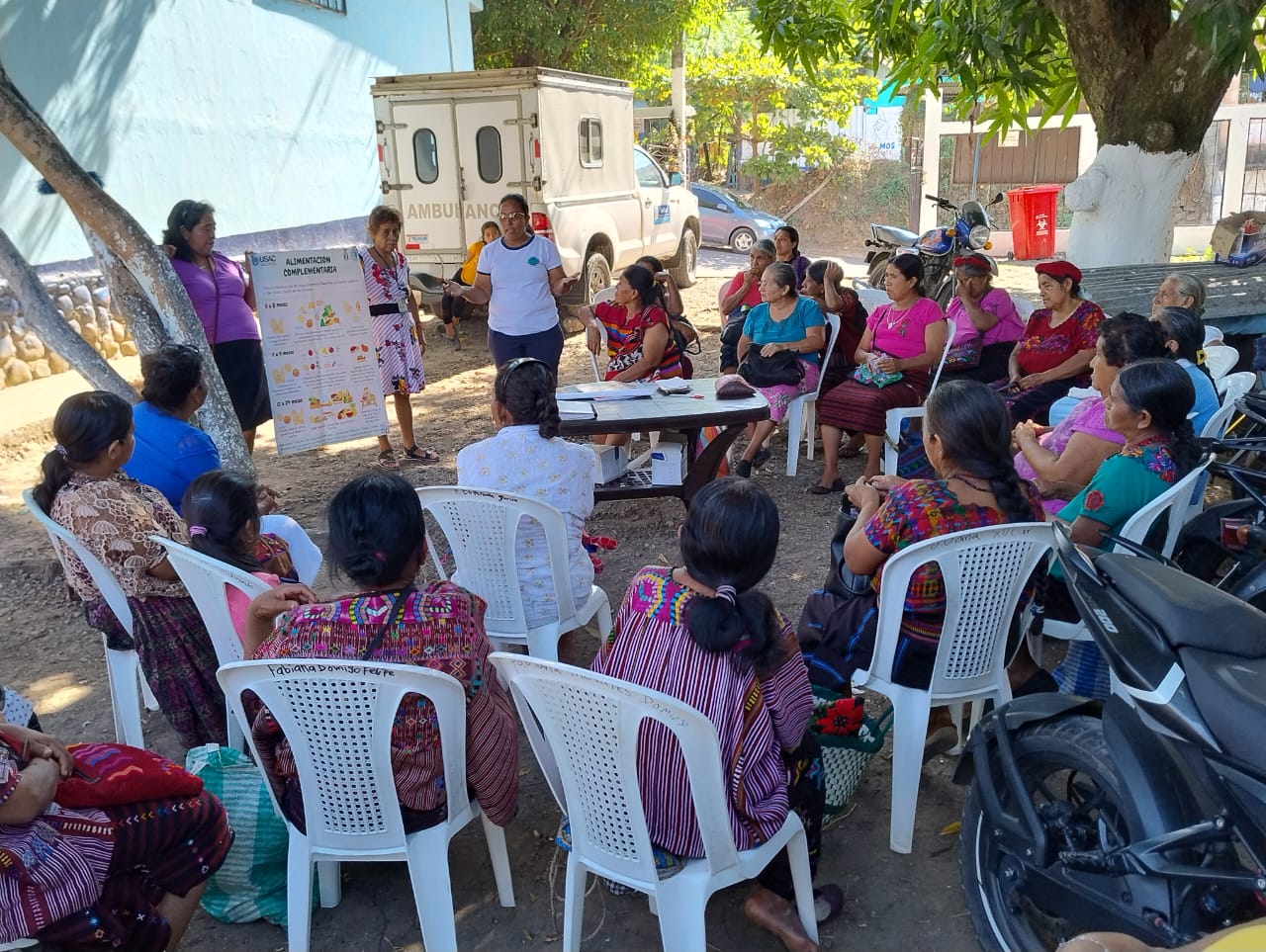 En comunidades de Guanagazapa, Escuintla, las abuelas comadronas juegan un papel fundamental en el cuidado de la salud de la población. Tomando en cuenta el liderazgo que tienen en los poblados que recorren es fundamental apoyarlas en el fortalecimiento de conocimientos para la asistencia a sus pacientes, así como aspectos relacionados a la protección de la nutrición.