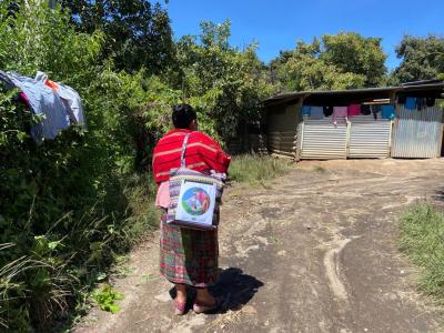 Como parte de la formación de capacidades con las Comadronas, se les ha entregado 2 mil 638 Kits que contiene una bolsa con fichas ilustrativas con los pasos para promover la Lactancia Materna, como material de apoyo para que ellas puedan dar sus consejerías.