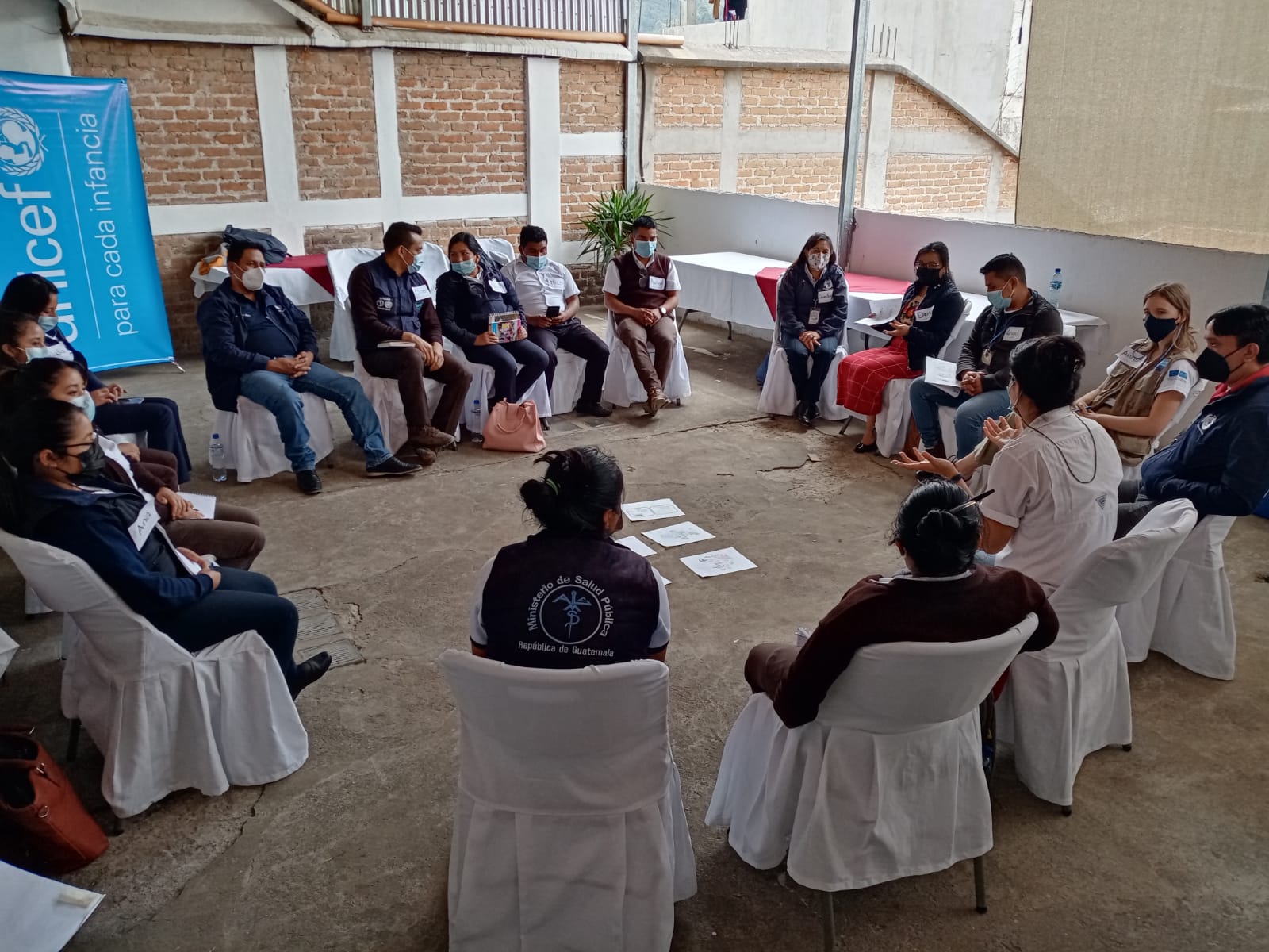 A la fecha han capacitados 572 trabajadores de Salud para la implementación de la estrategia: 214 de Quiché; 110 de Sololá, 31 de Chiquimula, 106 de Alta Verapaz, 56 de Huehuetenango y 55 del Área Ixil, Quiché, porque ellos son los que mantienen el fortalecimiento de las capacidades de las comadronas.