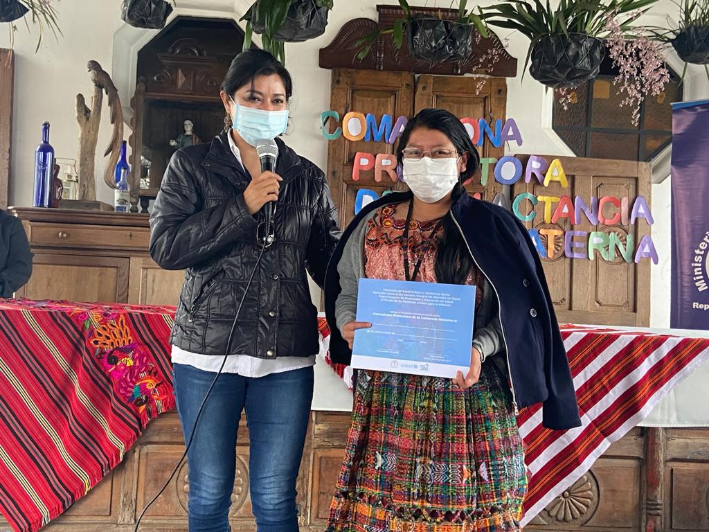 A través del personal de salud, con el apoyo técnico de Crecer Sano y en coordinación con el Fondo de las Naciones Unidad para la Infancia -UNICEF- se ha reconocido a 980 comadronas como Promotoras de Lactancia Materna, quienes están transmitiendo sus conocimientos en el tema a la población de sus comunidades. Adicional, 2 mil comadronas participan en los Intercambios de Saberes para ser reconocidas también, como Promotoras de la Lactancia Materna.