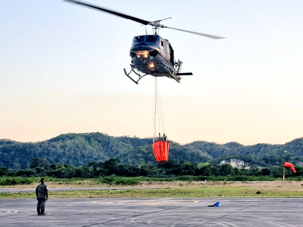 Este 21 de marzo, personal que integra el Comando Aéreo de Norte "Teniente Coronel Danilo Eugenio Henry Sánchez", realizó una prueba de dispersión de agua, utilizando el equipo especial conocido como “Bambi Bucket” con la finalidad de verificar su funcionamiento y así mantener el apresto para unirse al combate de incendios forestales desde el aire en el Norte de la República.