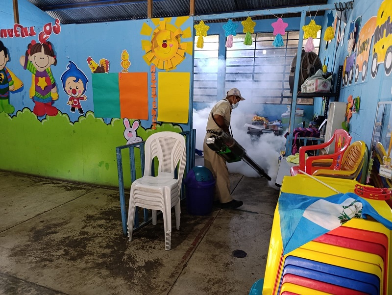 La brigada de Vectores de Barberena, Santa Rosa, está llegando a más aldeas para combatir el dengue a través de la nebulización.