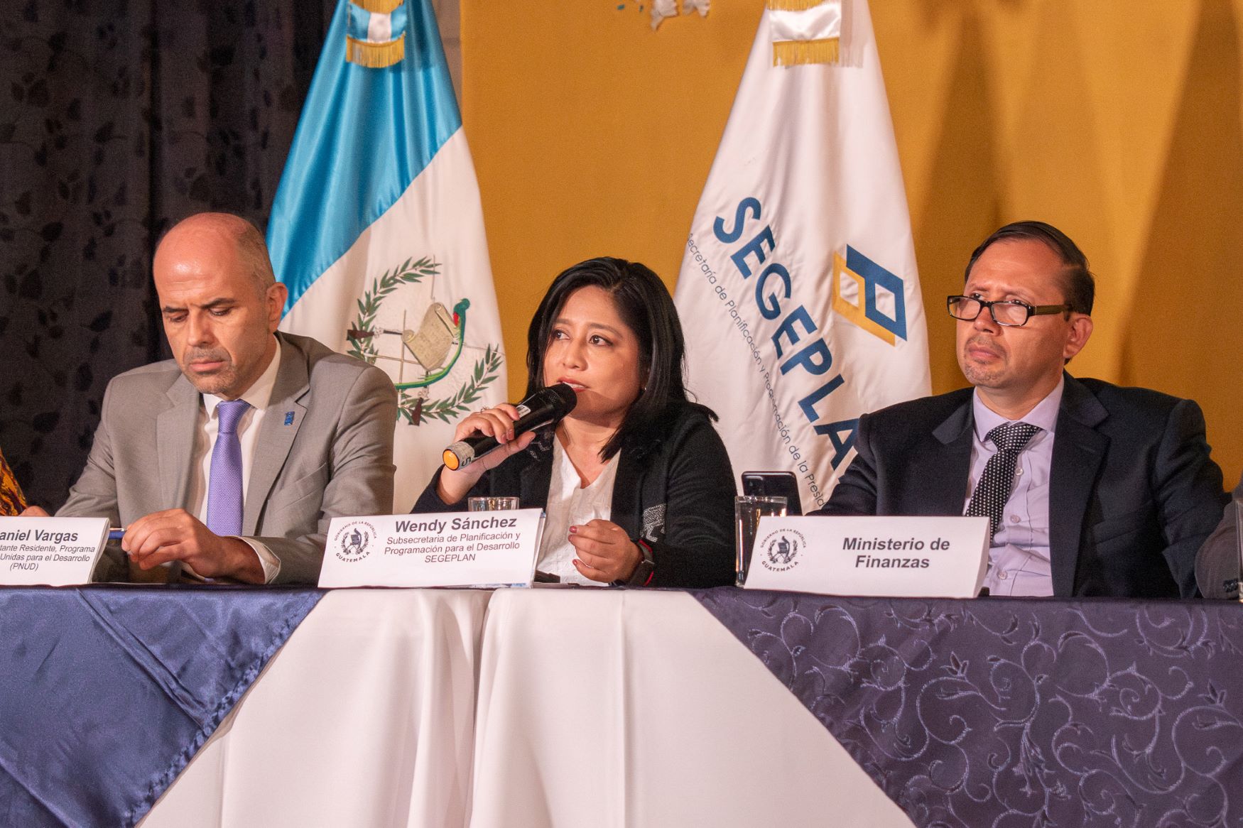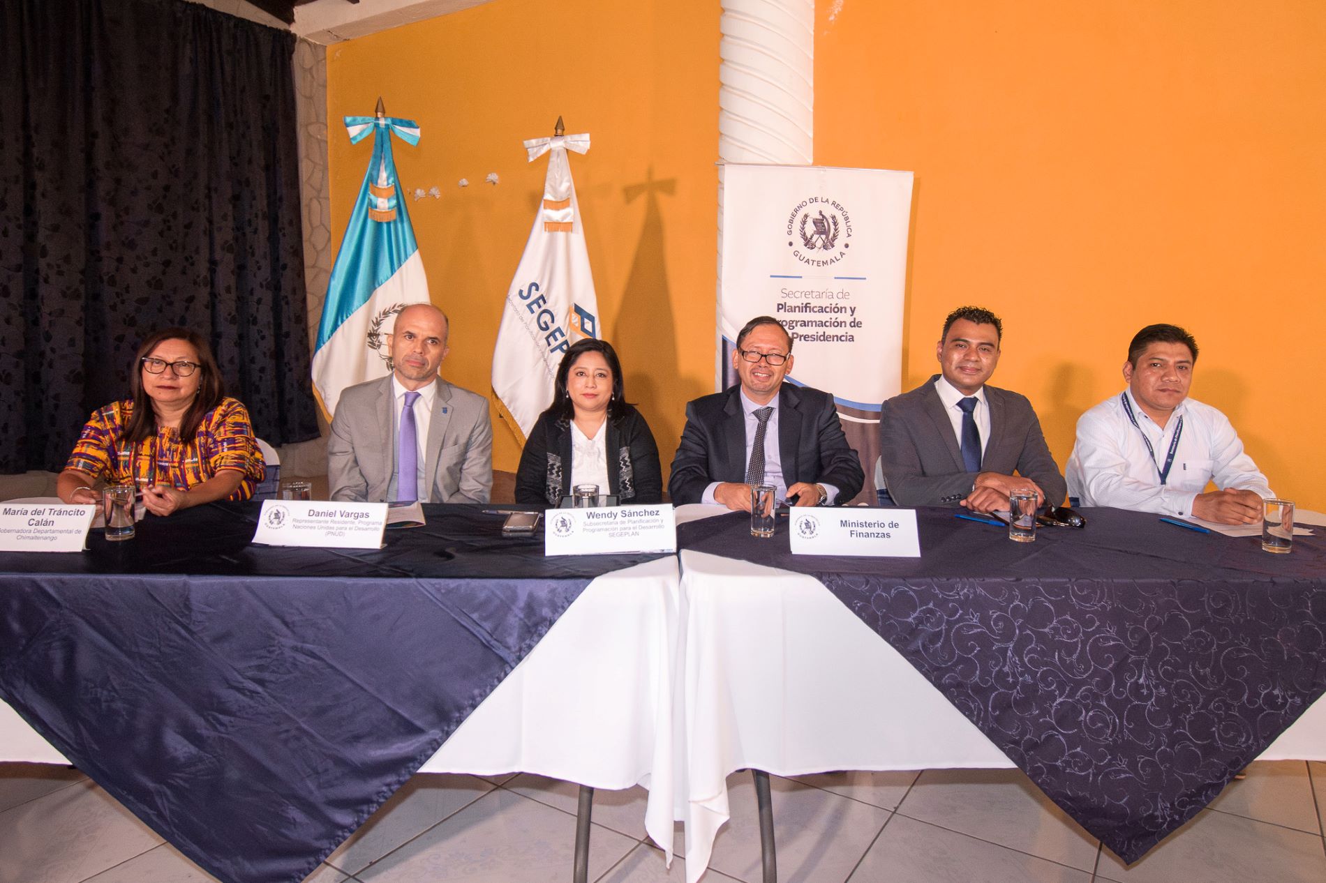 La subsecretaria estuvo acompañada de Richard Granja, director de Municipalidades del Minfin; María Calán, gobernadora de Chimaltenango; Daniel Vargas, representante del Programa de las Naciones Unidas para el Desarrollo (PNUD); Raúl García, delegado de SEGEPLAN en Chimaltenango, y Oscar Ramírez, delegado de SEGEPLAN en Sacatepéquez.