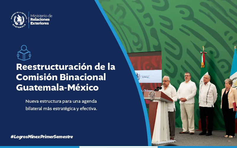 El Ministerio de Relaciones Exteriores elaboró una propuesta de reestructuración de la Comisión Binacional Guatemala – México con el objeto de convertirlo en un mecanismo ordenado y flexible, que permita ser más estratégicos en el abordaje de la agenda bilateral, además de contar con herramientas que permitan su debido seguimiento.