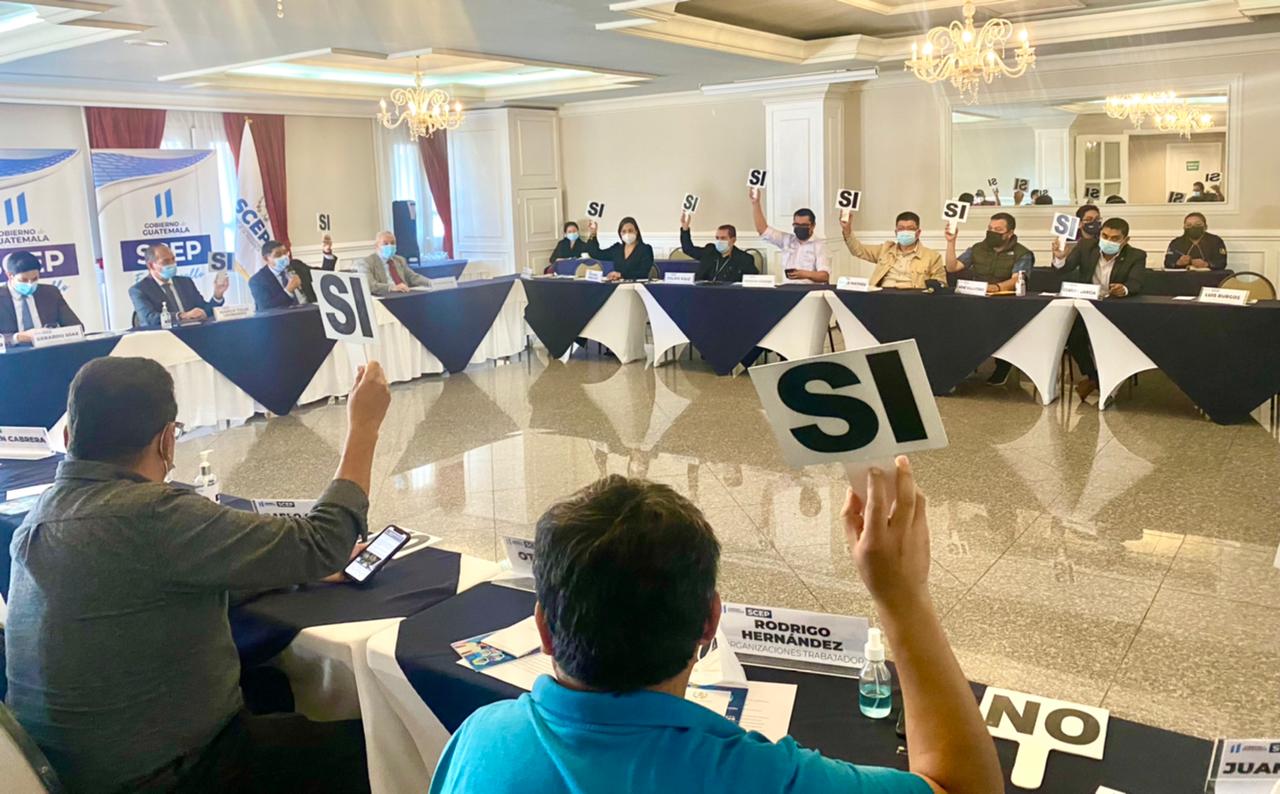 La comisión de trabajo está integrada por autoridades de SCEP, SEGEPLAN y Ministerio de Finanzas Públicas, así como por alcaldes municipales en representación de las ocho regiones del país, los coordinadores de los Consejos Regionales de Desarrollo Urbano y Rural, y representantes de sociedad civil ante el Conadur.