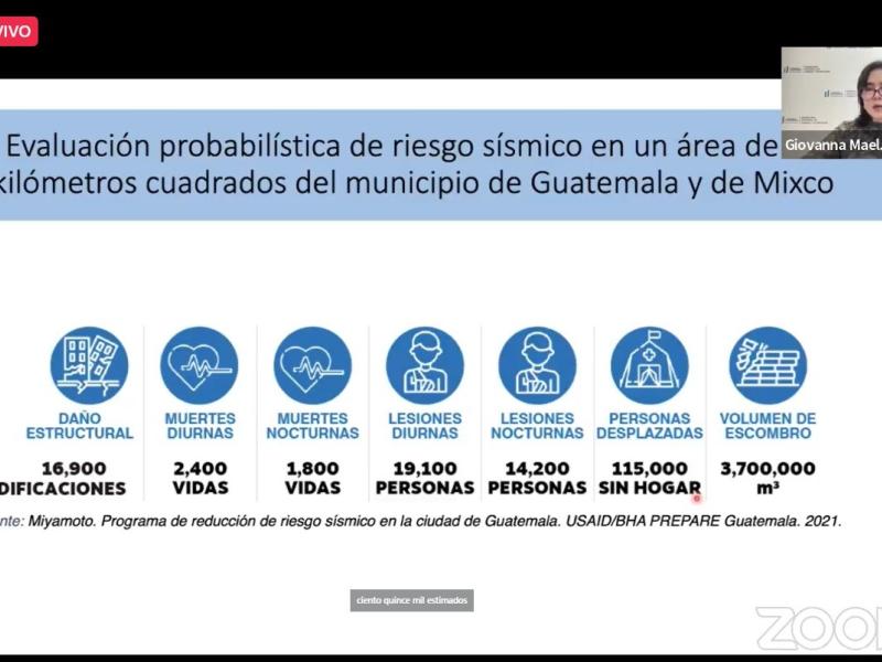 Al abordar el tema de la prevención de riesgos sísmicos la arquitecta Giovanna Maselli, representante suplente de la Facultad de Arquitectura de la USAC, enfatiza que “son necesarios los estudios de microzonificación sísmica, los cuales deben ser integrados en normativas a los planes de desarrollo urbano, planes de ordenamiento territorial y desarrollos inmobiliario”.