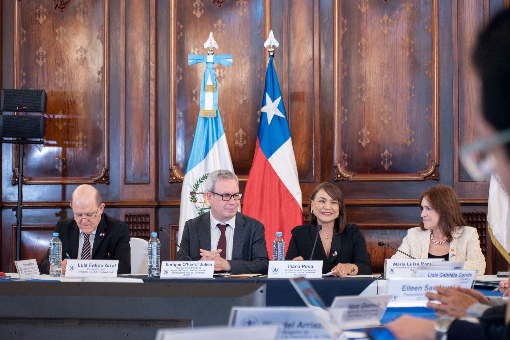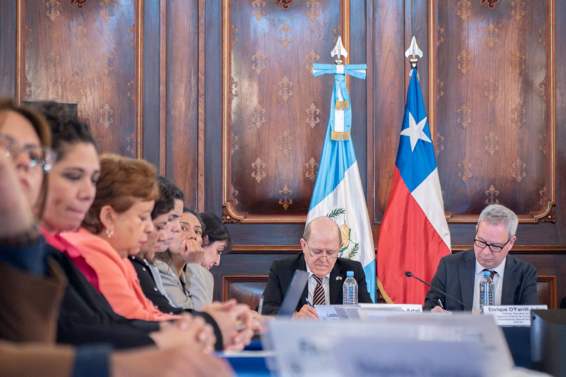 Por parte de Chile, la reunión estuvo encabezada por el embajador chileno acreditado en Guatemala, Luis Felipe Artal, y el director ejecutivo de la Agencia Chilena de Cooperación para el Desarrollo (AGCID), Enrique O’Farril Julien.