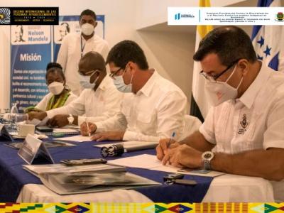 Esta actividad, sirvió como marco para la firma de la carta de entendimiento tripartita entre los Alcaldes Municipales Lic. Hugo Sarceño de Puerto Barrios, Ing. Daniel Pinto de Livingston Izabal y el Dr. Jerry Sabio de La Ceiba Atlántida, Honduras. Esto con la finalidad de velar por el bienestar y el desarrollo de la población garífuna y Afrodescendiente que habita en estos lugares, en dicho evento se contó la presencia de la Vicepresidenta de la República de Costa Rica la Dra. Epsy Campbell Barr, así mismo, la Dra. Johanna Bermúdez Diputada y Presidenta de la Bancada Afro de Honduras, el Sr. Enrique Joseph Comisionado Presidencial para Asuntos Afrodescendientes de Costa Rica. de igual Manera, el Dr. José Robledo Director del CUNIZAB USAC y la Licda. Gabriela de León Coordinadora del PNUD. Otro punto que resalta en este magno evento fue la entrega del “Diagnóstico sobre la Participación de la Población de las Mujeres y la Juventud Garífuna y Afrodescendiente en la Política Municipal” a las Municipalidades de Livingston y Puerto Barrios.
