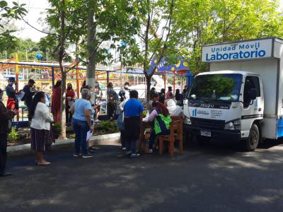 El laboratorio móvil se encuentra ubicado al final del Hipódromo del Norte, atrás del Mapa en Relieve donde ha estuvo los días miércoles 10 y jueves 11 de agosto, de 8 de la mañana a 4 de la tarde y se estimaba realizar un aproximado de 1,500 pruebas.