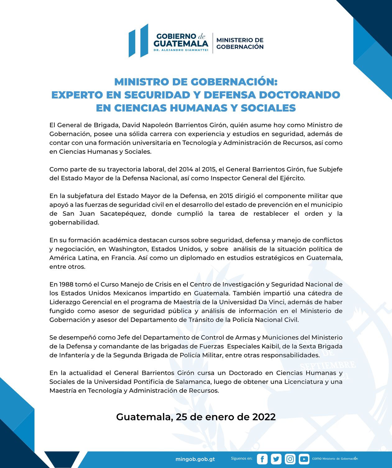 MINISTRO DE GOBERNACIÓN: