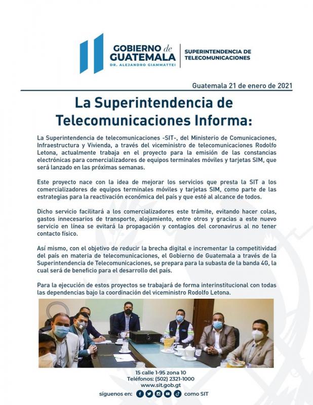 El Superintendente de Telecomunicaciones Marco Antonio Baten Ruíz participa en reunión con el Viceministro de Comunicaciones @rodolfoletona y con Directores del viceministerio de telecomunicaciones del CIV- Ministerio de Comunicaciones para conocer la planificación de trabajo de 2021