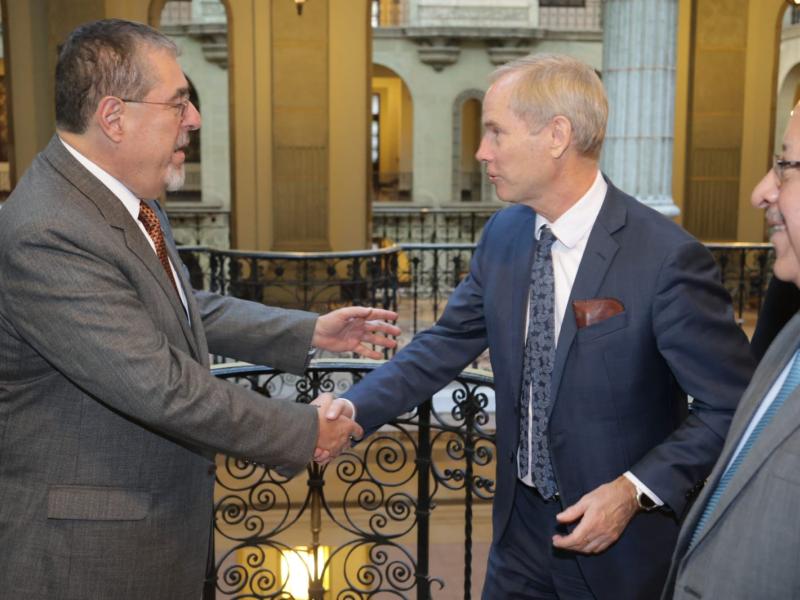Durante la visita efectuada a Guatemala, el Embajador Skoog sostuvo un fructífero encuentro con el Presidente de la República, señor Bernardo Arévalo, quien externó su agradecimiento al respaldo que la UE ha brindado históricamente al país, enfatizando a su vez la importancia de la consolidación de los derechos humanos a nivel nacional.