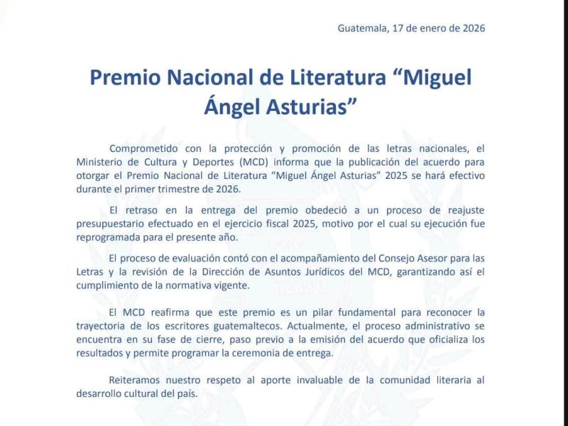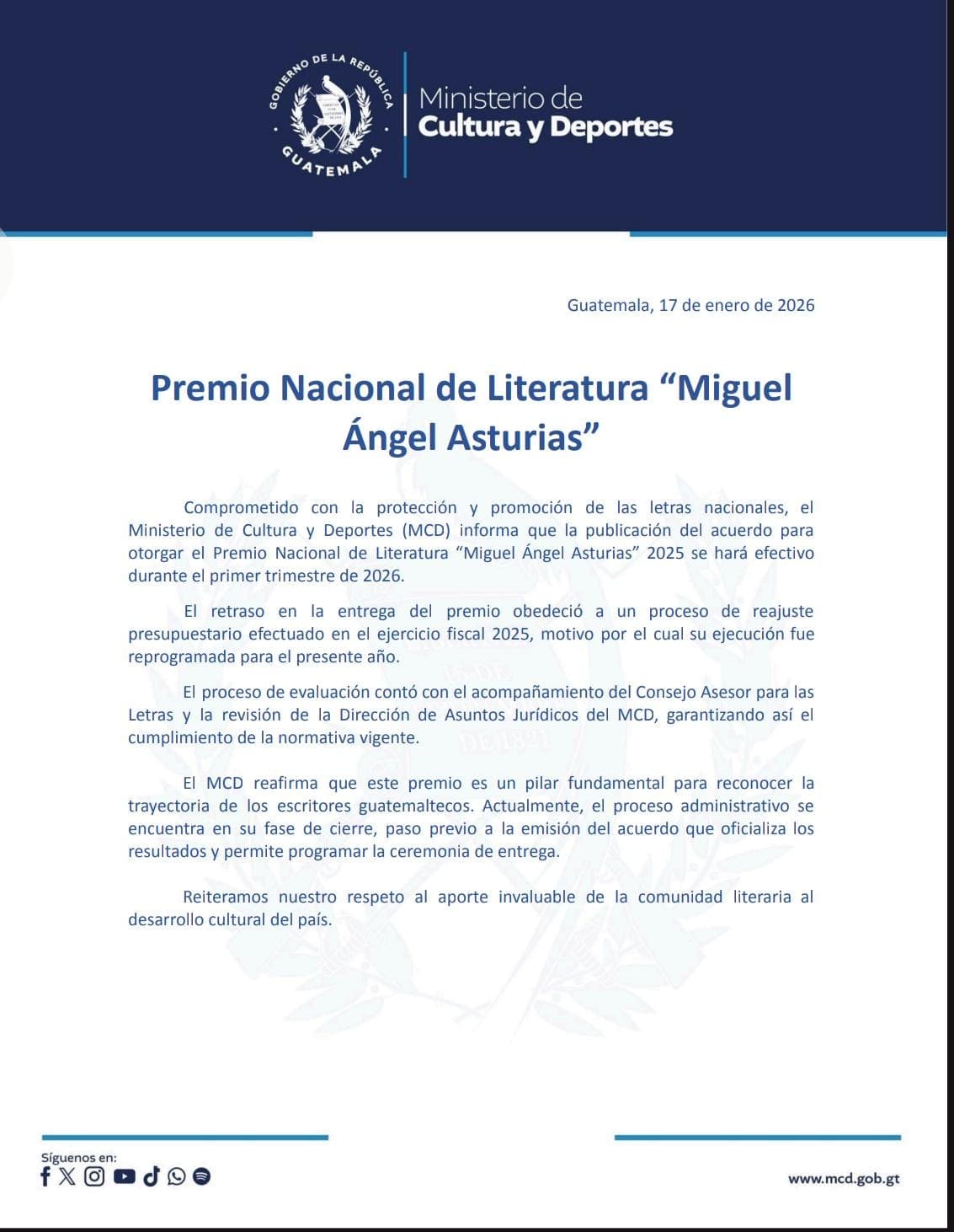 Comunicado: Premio de Literatura “Miguel Ángel Asturias”