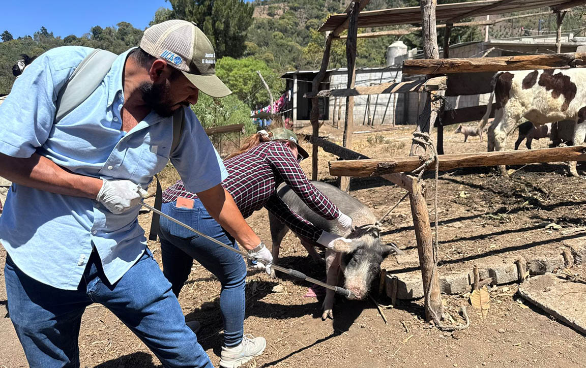 La jornada, coordinada por el Ministerio de Agricultura, Ganadería y Alimentación (MAGA), contó con el apoyo de estudiantes del segundo año de Medicina Veterinaria de la Facultad de Medicina Veterinaria y Zootecnia de la Universidad de San Carlos de Guatemala (USAC), quienes pusieron en práctica los conocimientos adquiridos y fortalecieron su preparación técnica.