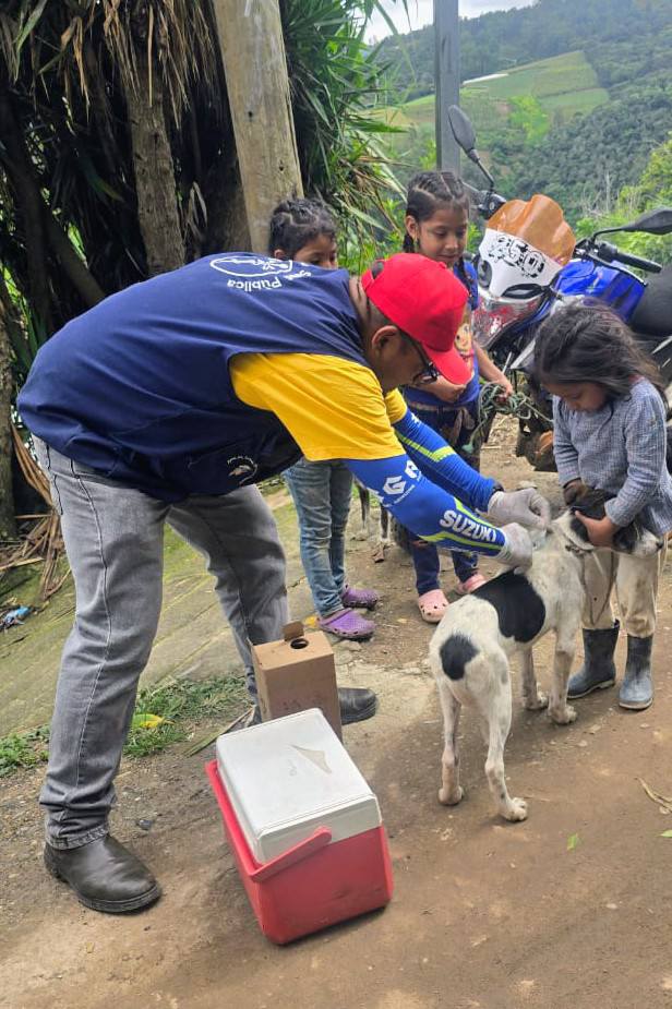 El personal de salud recorrió comunidades aplicando dosis de vacuna a perros y gatos, con el objetivo de protegerlos y prevenir la transmisión de la rabia en humanos.